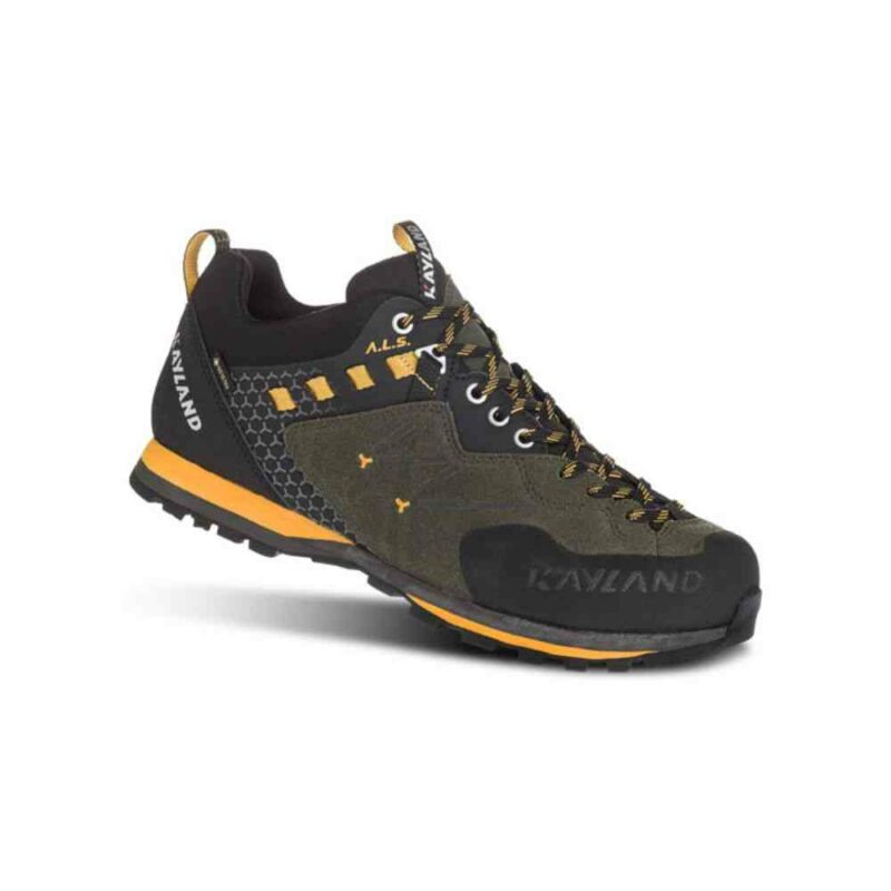 Ces chaussures d’approche Vitrik GTX extrêmement résistantes de Kayland se distinguent particulièrement par leur matériau supérieur presque indestructible et leur semelle stable. Grâce à l’utilisation de daim robuste et d’un revêtement en caoutchouc dans la zone des orteils et du talon, même les terrains les plus accidentés ne posent aucun problème pour ces chaussures. De plus, une membrane GORE-TEX assure une respirabilité élevée avec une bonne imperméabilité en même temps.